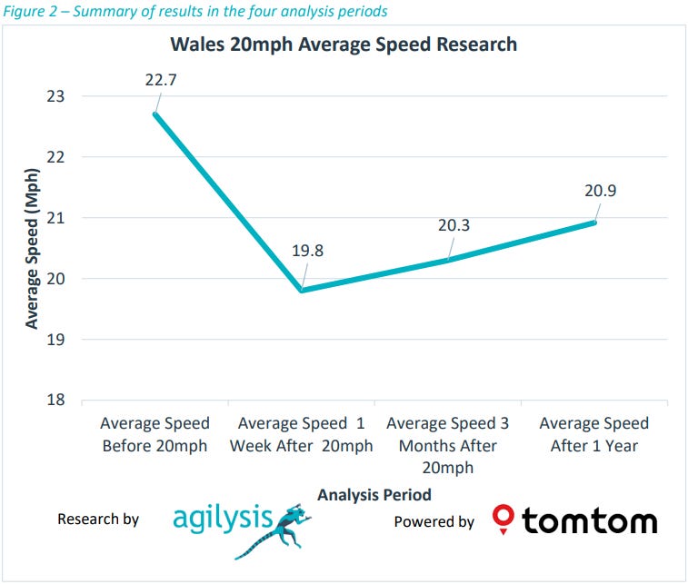 INTERESTING GRAPH OF THE WEEK: One way to cut insurance premiums is to cut speed limits. Every 1mph speed reduction can cut collisions by 3-6%, depending on the road type, and after success with Wales’ 20mph rollout, insurers have pledged to cut premiums by as much as £50 a year if more 20mph zones are introduced, because of the substantially reduced risk of death, injury and damage at lower speeds. Source: https://agilysis.co.uk/2024/09/20/wales-20mph-one-year-on/