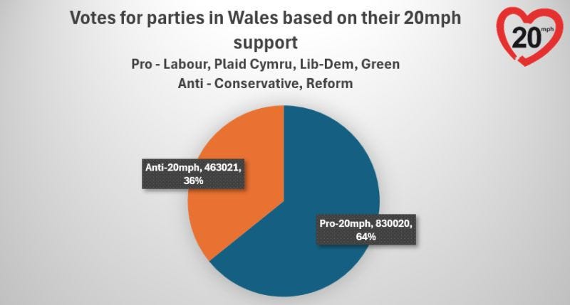 INTERESTING GRAPH OF THE WEEK: Rod King and the 20’s Plenty team have crunched the numbers and revealed not a single anti-20mph candidate won in Wales. As is often the case the noise does not reflect most people’s strongly held beliefs. People want safer streets, not speeding traffic. Source: https://www.linkedin.com/feed/update/urn:li:activity:7215754071603843072/