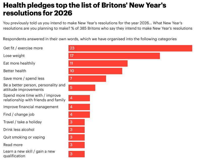 INTERESTING GRAPH OF THE WEEK: Just some of the top New Year’s resolutions people set themselves. Source: https://yougov.co.uk/society/articles/53756-what-new-years-resolutions-are-britons-making-for-2026